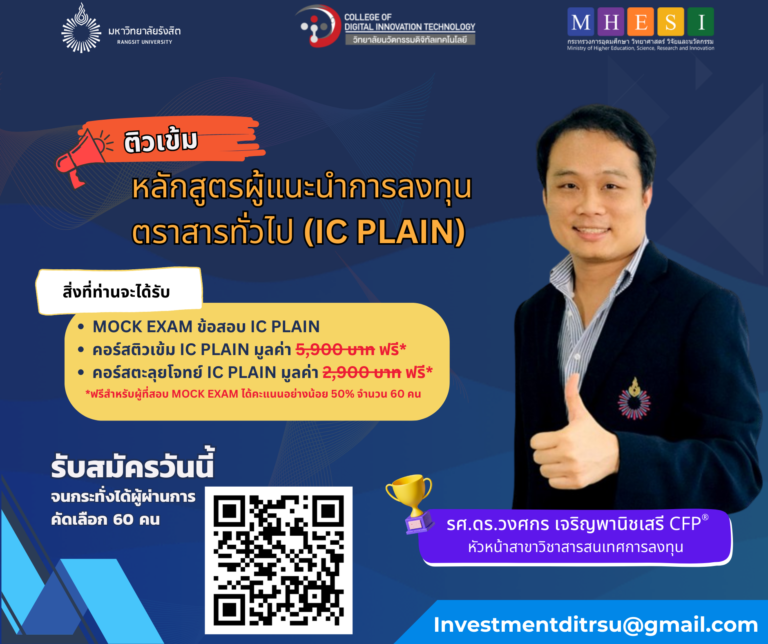 เปิดหลักสูตรผู้แนะนำการลงทุนตราสารทั่วไป (IC Plain)